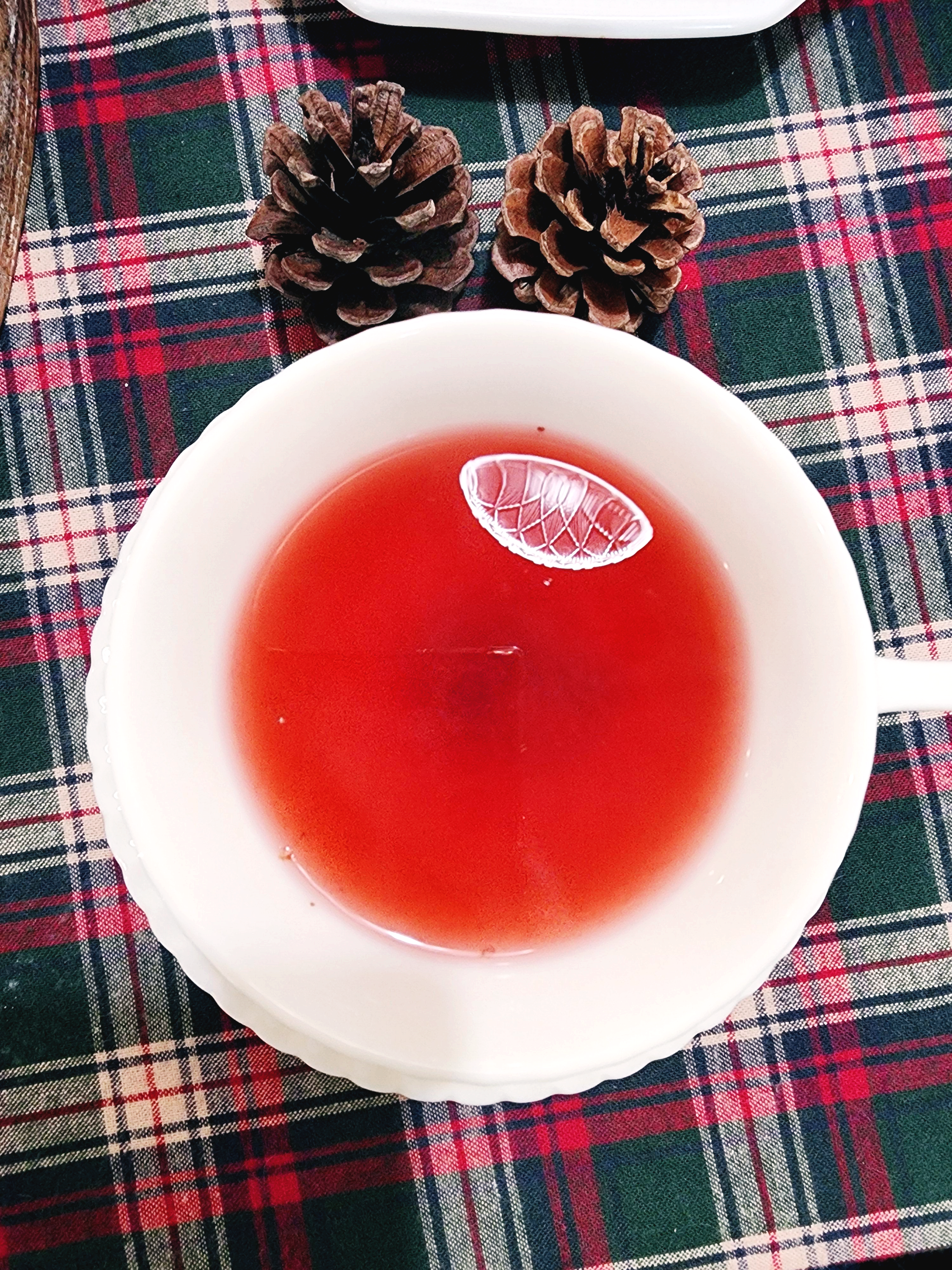 장미차에 딸기청을 넣어서 마시는 차인데, 와인이 살짝 들어간 버전과 안 들어간 버전이 있습니다.