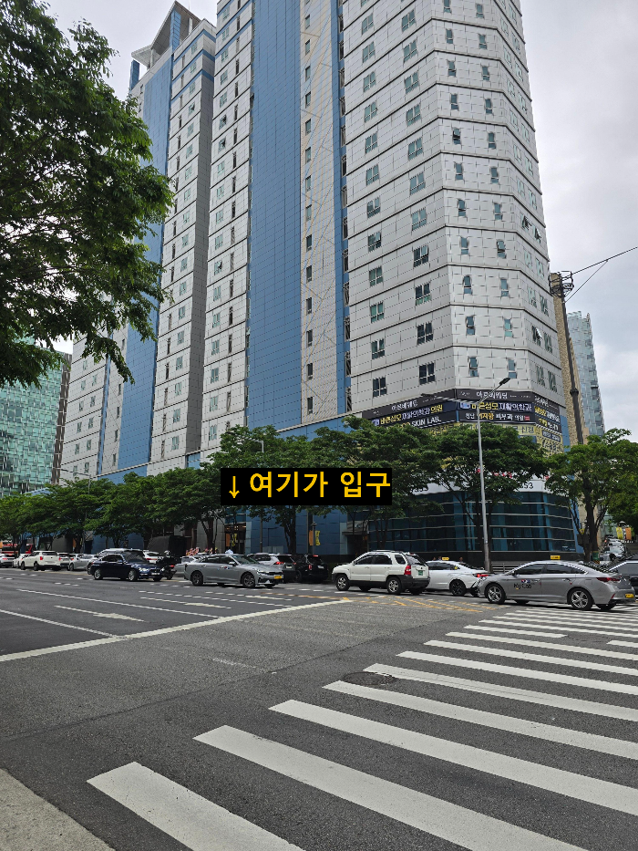 건물 앞에 사거리가 있는데, 꼬리물기가 심해서 교통 체증이 심각했다.