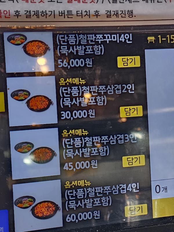그래서 직접 메뉴판을 사진 찍어 왔습니다.