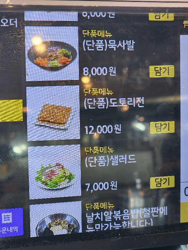 단품 메뉴에 도토리전을 시킬 거라면 차라리 세트를 주문하세요.