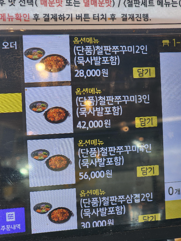철판쭈꾸미(덜 매운맛-안 맵고 맛있었어요)