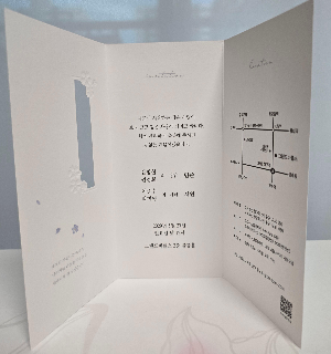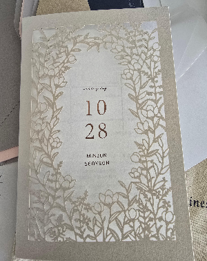 • 이유: 비용을 줄여보려 셀프로 청첩장을 제작해 10부만 시범으로 받아봤는데… 크기가 너무 작았어요 😢 원하는 사이즈로 다시 제작하려고 견적을 내보니, ‘보자기카드’에서 주문하는 게 오히려 더 저렴하더라고요!